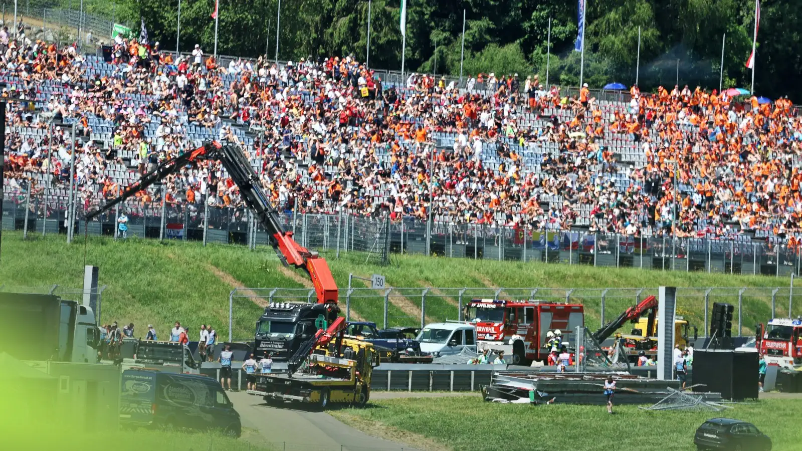 PlanetF1.com understands that the only damage incurred was to the track as the advertising bridge came down, but the debris was cleared to ensure that the Austrian Grand Prix will go ahead on time.