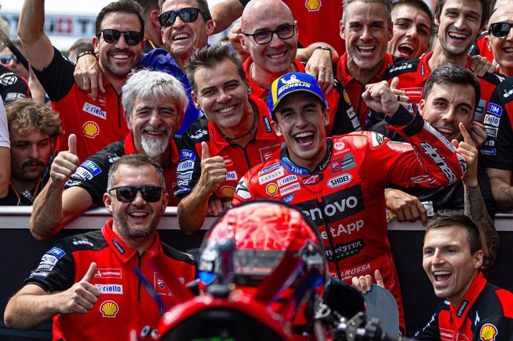 De eerste seizoenshelft van Marc Márquez bij het fabrieksteam van Ducati is een daverend succes geworden. De zesvoudig MotoGP-kampioen wist in de eerste twaalf Grands Prix van 2025 elf sprintraces te winnen en acht overwinningen op zondag te boeken, waaronder de laatste vijf op rij. Daardoor begint hij met een riante voorsprong van 120 punten aan de zomerstop. “Dit is suprematie die louter overwinningen overschaduwt en veel zegt over het geweldige werk dat we doen op het gebied van symbiose tussen motor en rijder, iets waar we terecht trots op zijn”, schrijft algemeen directeur Gigi Dall’Igna van Ducati Corse dan ook op zijn LinkedIn-pagina.